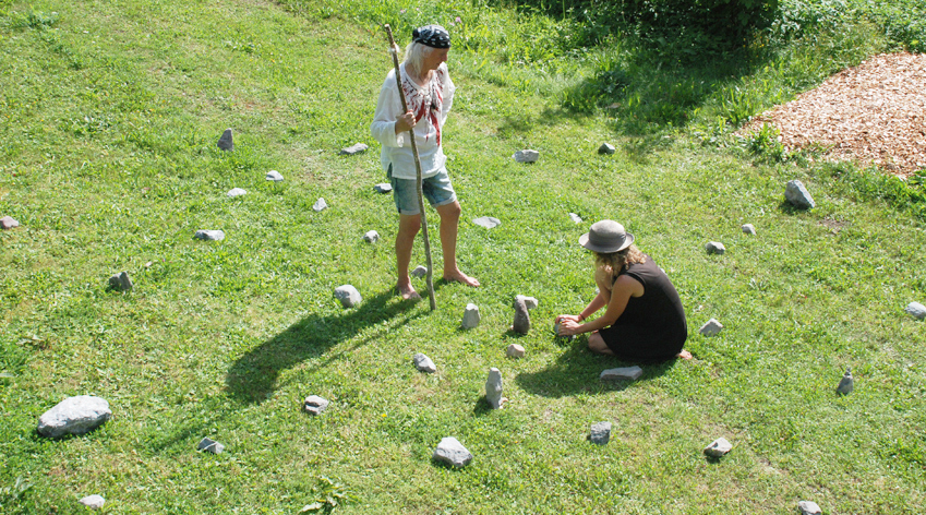 Das Heyoka-Medizinrad habe ich als Auftrag meiner Spirits bekommen und nach ihren Angaben aufgebaut. Das bedeutet, dass ich es mit den Steinen vor Ort, die sich dafür bereit erklären, aufbaue und nach der Arbeit mit ihm auch wieder abbaue. Nur in wenigen Fällen bleibt es bestehen, wenn der Ort dafür geeignet ist und der Auftrag dafür besteht.